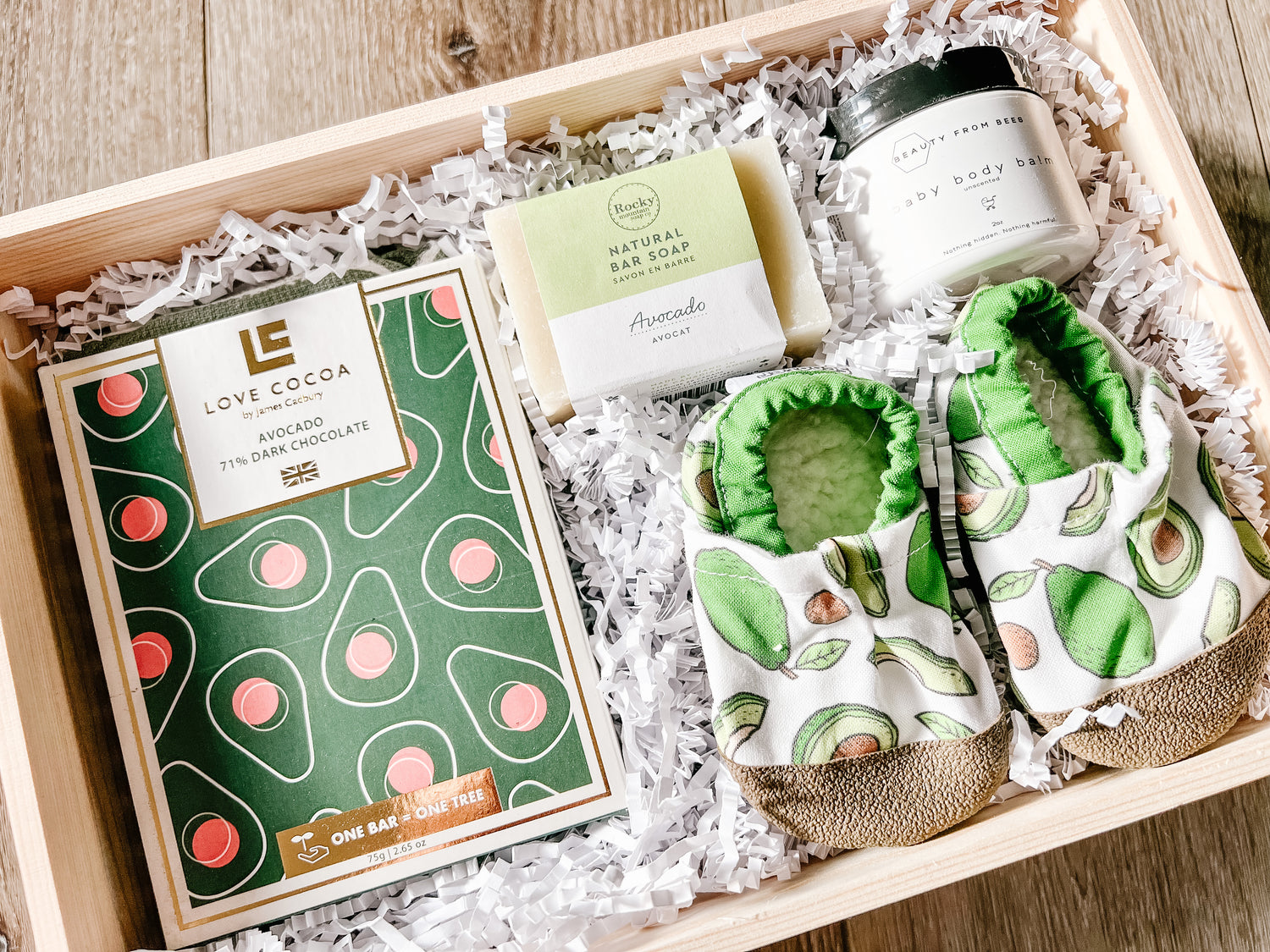 Avocado Mom & Baby gift box is super cute with items for mom & baby.
